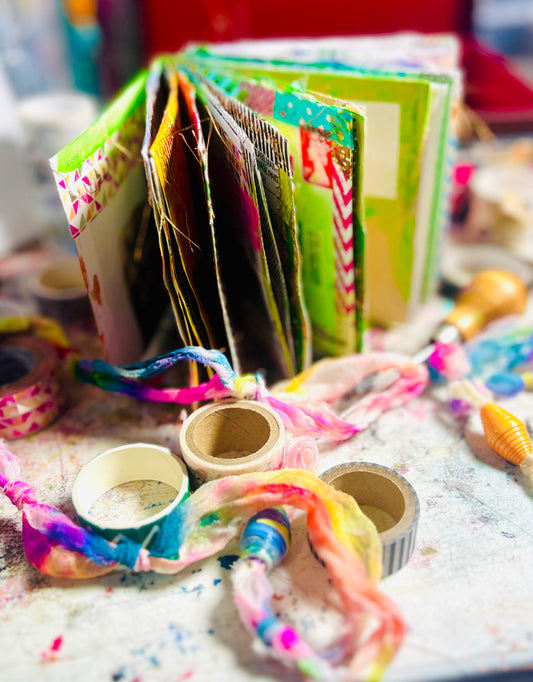 Inky glue bound chunky accordion style Journal