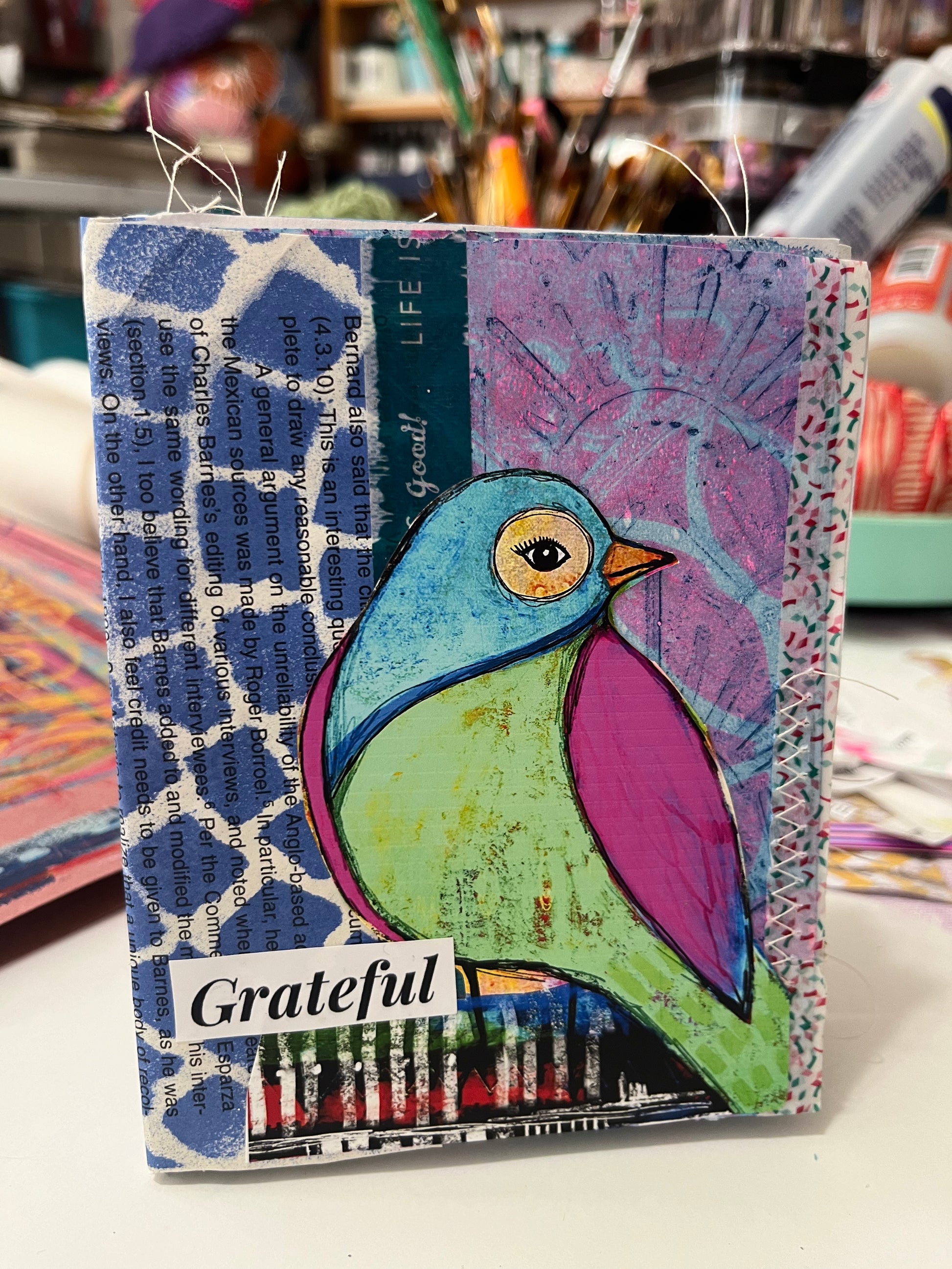 These 5.5 x 4 scrappy journal is created with scraps of art, gelli prints, ledger paper, under papers.. and many more, glued and stitched together for a one of a kind journal.. for all art, collage, writing, notes, pics and anything you'd love to add. Comes with a bag of surprises and extra goodies😁