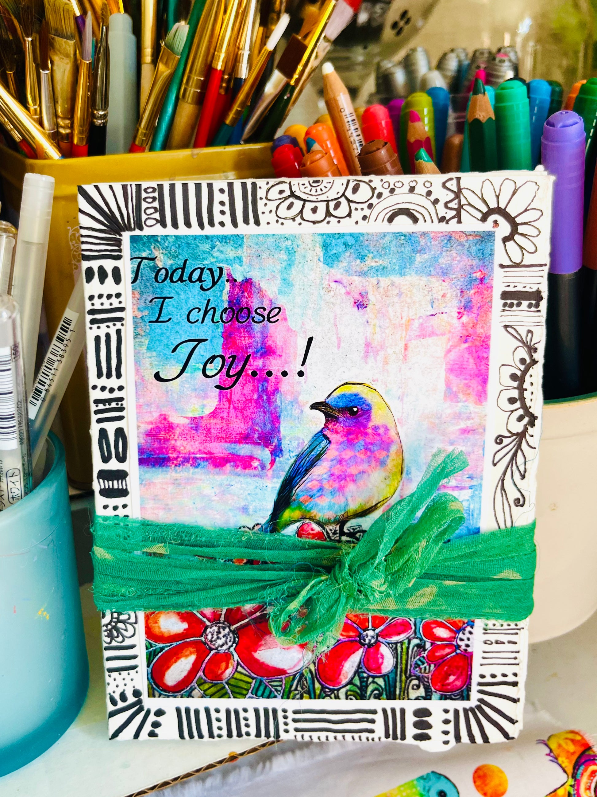 These 6 x 4.5 chunky journals are glue bound and are created with watercolor pages, with a print for the cover. They are fun to paint in, write in, collage, doodle add stickers , to find list add quotes, thoughts or even photos. I use for all the above!!